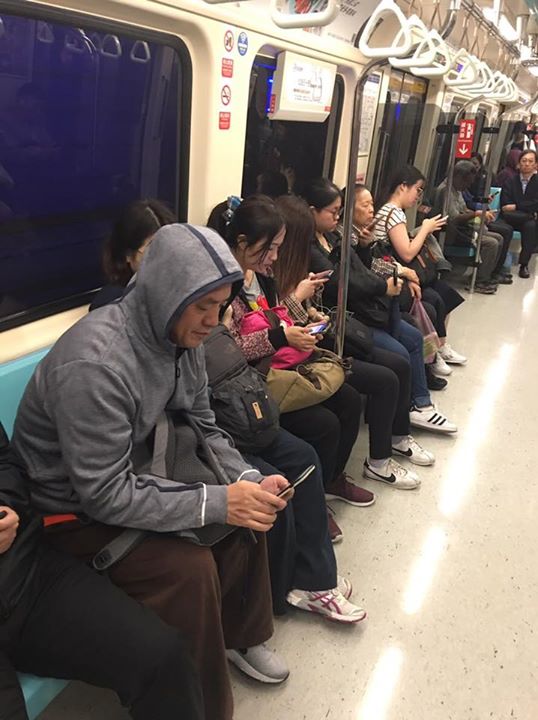 我们尊贵的佛师,天上地上最最慈悲的佛陀坐在地铁上…………