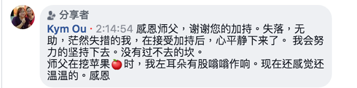 經過了師父的能量加持,頭痛消失了!